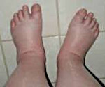 • I – патология сопровождается незначительными отеками на нижних конечностях – стопах и голенях.